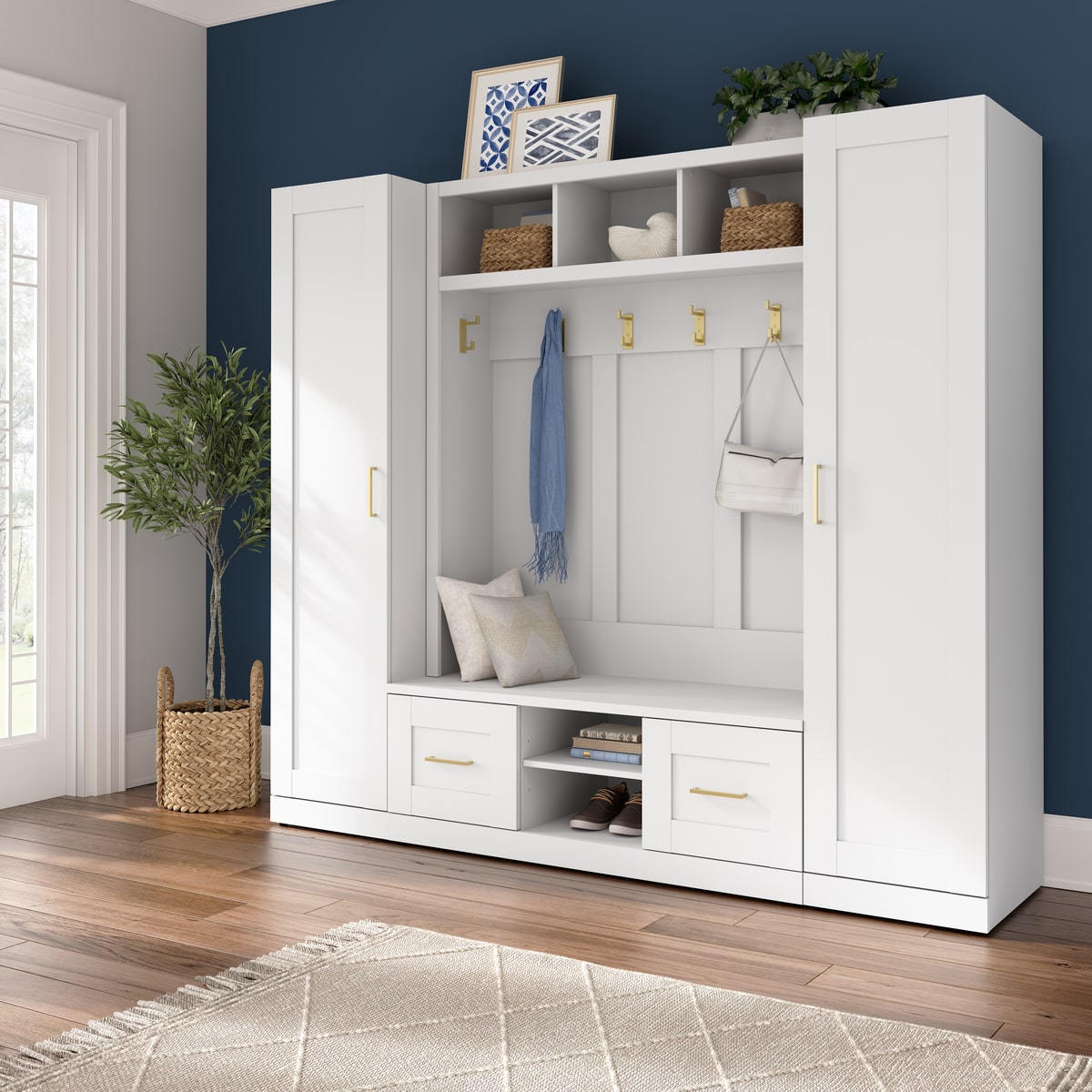 Maintaining a tidy home starts right inside the front door, and our collection of entryway cabinets offers an ideal way to eliminate clutter. Add a mudroom storage cabinet with doors and shelves to your space to keep shoes, gloves, hats, scarves, and other miscellaneous household items organized and accessible. Multiple sizes, styles, and finishes are available for a look to suit any space and taste. Complete your entryway storage set with a coordinating hall tree and shoe bench to organize jackets and footwear.