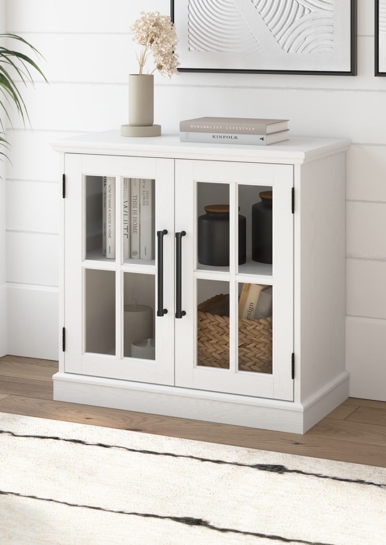 The Westbrook collection combines rustic farmhouse charm with a contemporary twist, featuring storage and office solutions with elegant glass accents and matte black handles to elevate your home's aesthetic.