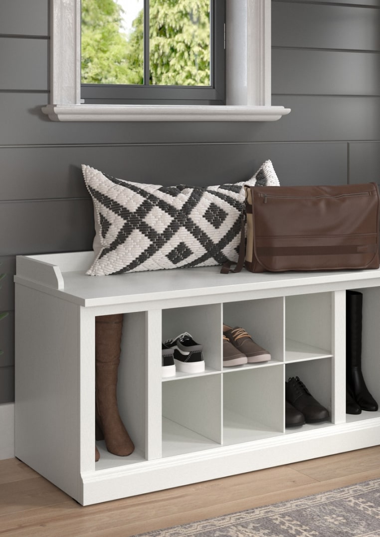 Woodland 40W Entryway Bench with Doors and Wall Mounted Coat Rack